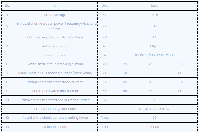 تصنيف الجهد:40.5kV (الصمود 95kV البرق الدافع).