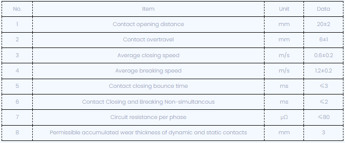 بعد ضبط قاطع الدائرة ، يتم عرض المعلمات المميزة الميكانيكية أدناه: