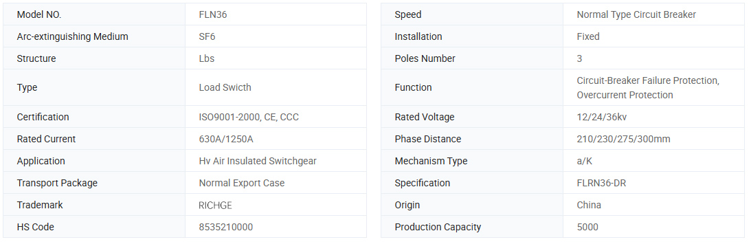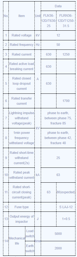 يستخدم مفتاح التحميل FLN36-12D/T630-20 غاز SF6 كوسط عزل ووسائل إطفاء القوس ؛ لديه ثلاثة مواقف: الإغلاق ، والفتح ، والتأريض ؛ جهات الاتصال الديناميكية والثابتة لها عزل مزدوج ، وموثوقية أعلى ؛ الحياة الكهربائية الممتدة (مستوى E3 ، تصنيف 100 مرة) ؛ الحياة الميكانيكية الممتدة (مستوى M2 ، 5000 مرة) ؛ تصنيف الاستقرار الحراري الحالي (4S) 20KA ؛ وظائف الإغلاق والافتتاح هي تشغيل كهربائي أو يدوي ، وموقع التأريض هو التشغيل اليدوي ؛ يتوفر إمدادات الطاقة الكهربائية في AC220V ، AC110V ، DC220V. DC110V ، DC48V ، DC24V ؛ يتمتع بتشتيل التشغيل الكهربائي واليدوي ، وتشغيل وظيفة حماية الاتصال العكسي لمصدر الطاقة ؛