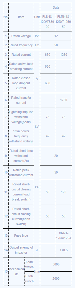 المعلمات الفنية من FLN48-12D النوع الداخلي HV SF6 كسر