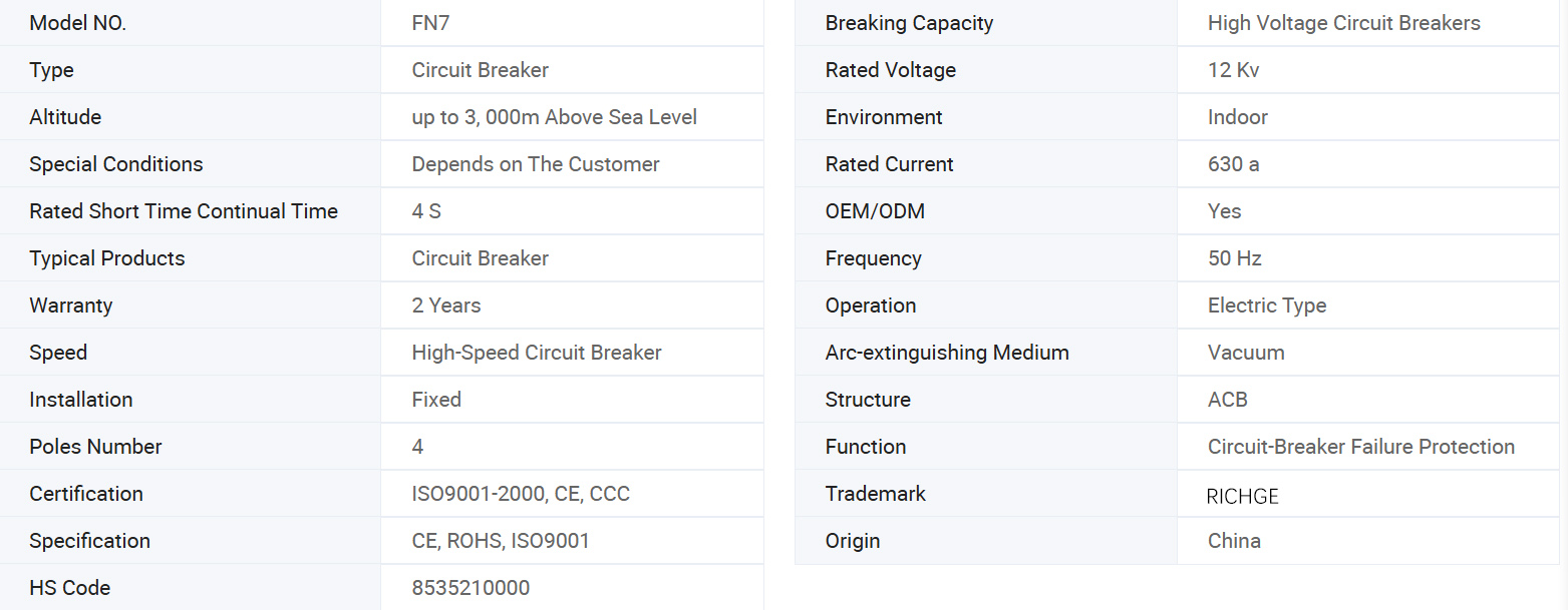 مفتاح تحميل تحميل سلسلة FN7 ، ويأتي بشكل عام مع آلية الربيع للتشغيل وإيقاف الإمداد ، ومع ذلك ، يتوفر أيضًا خيار قاطع دائرة الفراغ. بالطبع ، الخيار مع قاطع الدائرة الفراغ أكثر تكلفة. يعتمد الاختيار بين هذين الاثنين على العميل. مفتاح كسر تحميل مع قاطع دائرة الفراغ هو خيار أكثر موثوقية.