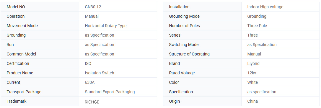GN30-12 Disconnector Indoor Rotary عالية الجهد هو نوع جديد مع سكين دوار. تتمثل الصيغة الهيكلية الرئيسية في إصلاح مجموعتين من العوازل والاتصالات على الطائرات العلوية والسفلية للإطار المنخفض المشترك من ثلاثة مراحل ، مع إدراك فتحة المفتاح وإغلاقه عن طريق تدوير السكين. يضيف Switch GN3-12D شكلًا من سكين التوصيل على أساس GN30-12 لتلبية احتياجات أنظمة الطاقة المختلفة. هذا المنتج مضغوط في التصميم ، صغير في الفضاء ، قوي في العزل ، سهل التثبيت والضبط. يفي بمتطلبات "مفتاح عزل الجهد العالي ومفتاح التأريض" ، وهو ينطبق على الأنظمة الداخلية مع الجهد المقنن يصل إلى 10 كيلو فولت AC 50 هرتز وأقل. يمكن استخدامه كدائرة فتح وإغلاق عندما يكون هناك جهد ولا حمولة. يمكن استخدامه مع مفاتيح الجهد العالي أو يمكن استخدامه بمفرده.