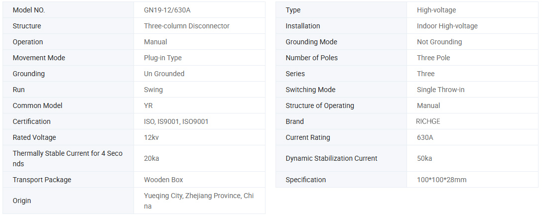 GN19-12 (C) Series Indoor AC التبديل العالي الجهد هو مناسب ل AC 50Hz ، الجهد المصنف 12 كيلو فولت وتحت نظام الطاقة ، وهو مزود بآلية تعامل يدوي CS6-1 ويستخدم لكسر وصنع الدائرة تحت عدم الحمل. هناك نوع تلوث إضافي ونوع الارتفاع والطاقة التي تشير إلى نوع. يتم صنعه حسب IEC 62271-102. يستخدم لتبديل الأجهزة الكهربائية تحت حالة الجهد ولكن لا يوجد تحميل ، كما يتم إرسالها لإنتاج نوع مضاد للهدوء ونوع الهضبة وأجهزة العرض المباشر التي يمكن تثبيتها. GN19-12 سلسلة مفتاح عزل الجهد العالي الداخلي هو جهاز داخلي مع الجهد المصنف من 12 كيلو فولت وثلاث مراحل AC 50Hz.