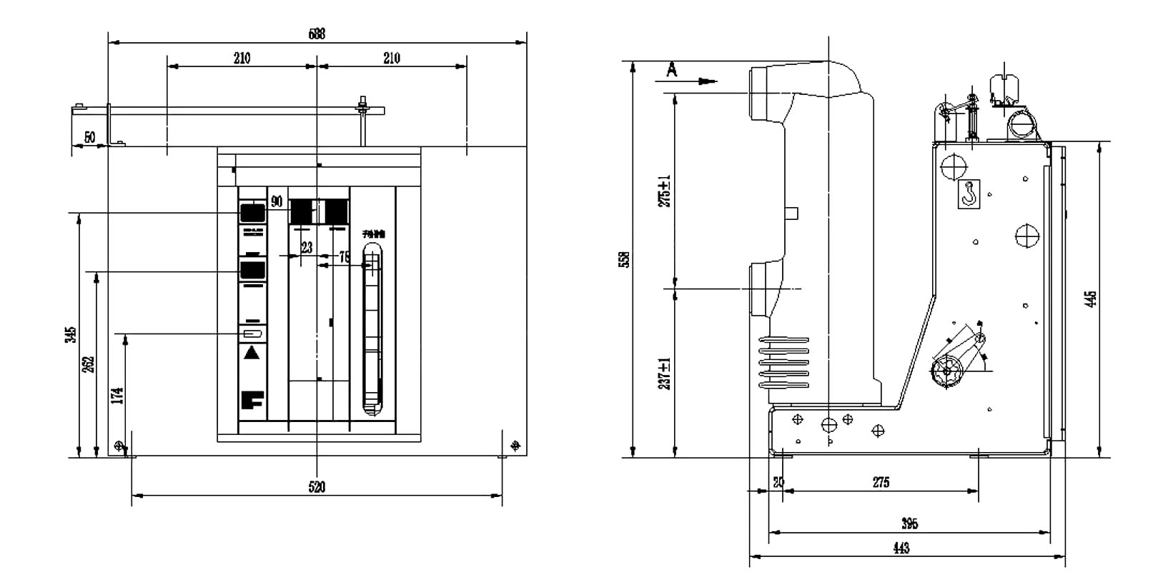 الأبعاد الإجمالية لـ VSG-12/1600 النوع الثابت VCB