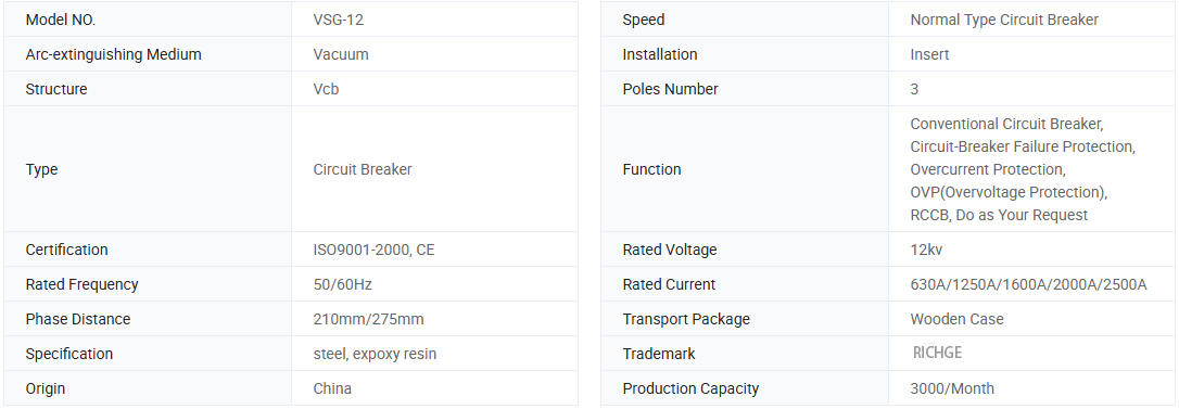 VSG-12 Type Indoor Voltage Voltage Circuit Breaker تستخدم الربيع لتخزين طاقة. يمكن تشغيل آلية التشغيل بطريقتين ، من خلال التشغيل اليدوي والكهروموتيف ، يتم وفقًا لخصائص GB1984-2003 قاطع دائرة AC عالية الجهد ، JB3855-1996