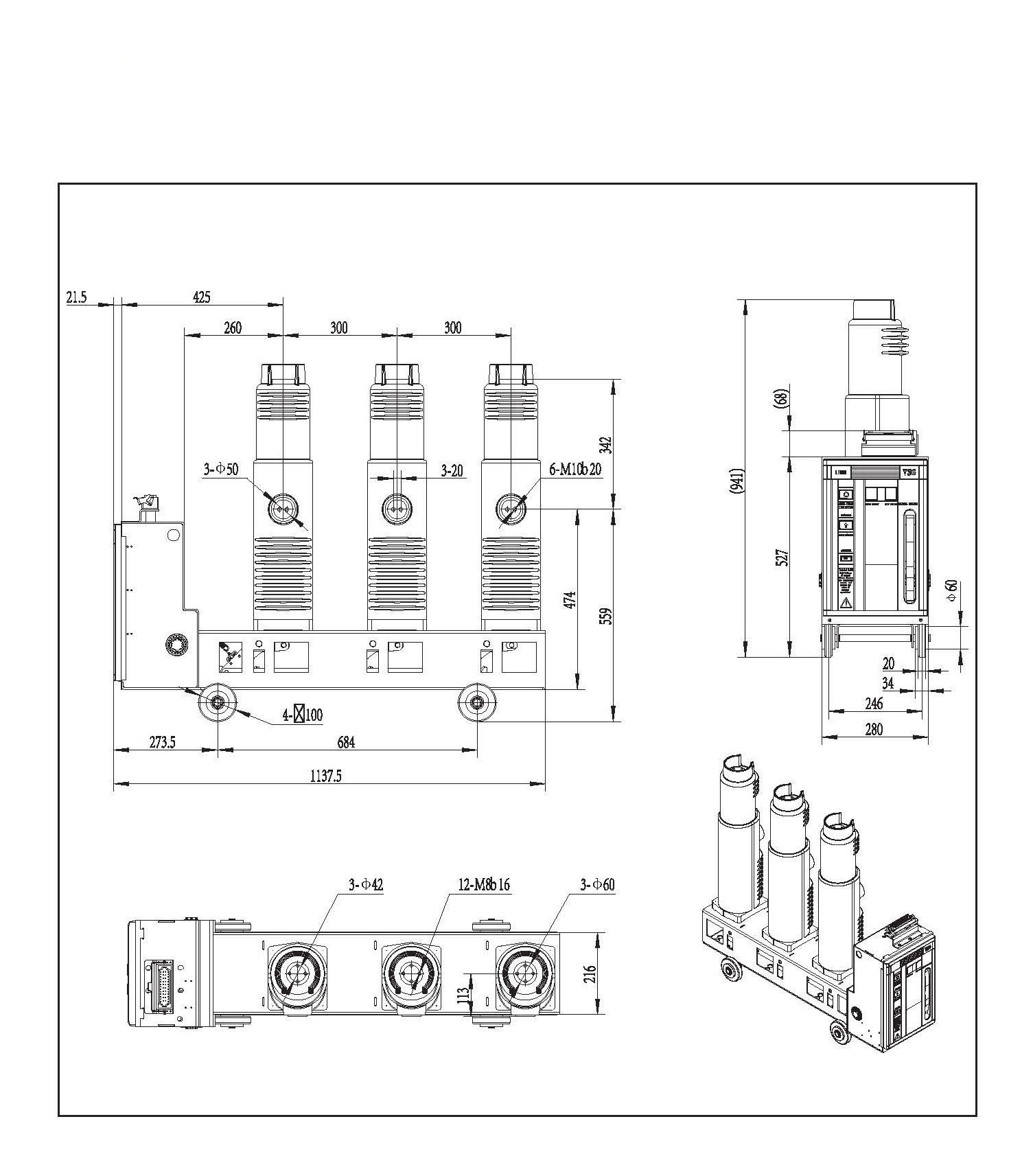 VSG-40.5C المدمج القطب الجانبي قاطع دائرة الفراغ الداخلي
