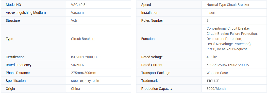 VSG-40.5C Series Circuit Circuit Breaker هو نوع جديد من ثلاث مراحل 50 هرتز وفقًا لمفهوم التصميم الفريد ومضمونًا مع الطلب على السوق وتطويره ، والجهد المصنوع من المفاتيح الداخلية 40.5kV ، يمكن توفيره لمؤسسات الصناعية والتعدين ، ومحطات الطاقة والبديل عن السيطرة على المعدات الكهربائية وحمايةها ، وهي مناسبة للتشغيل المتكرر.
