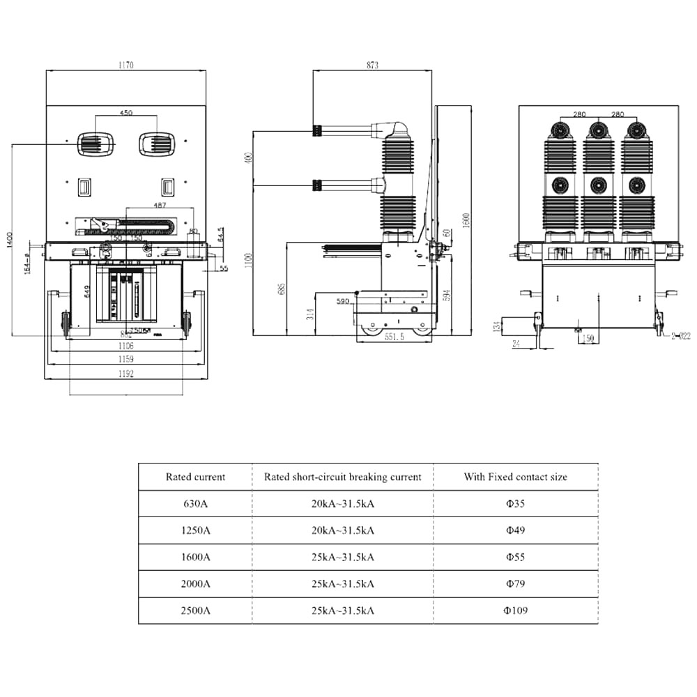 VSG-40.5KV عالية الجهد قابلة للسحب قاطع الدائرة مثبتة على الأرضية