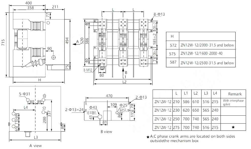 قواطع الدائرة الفراغية Zn12 هي جهاز مفاتيح مفاتيح داخلي عالي الجهد مع فولتية مصنفة من 12 كيلو فولت ، 24 كيلو فولت ، و 40.5 كيلو فولت ، وثلاثة مراحل AC 50 هرتز. إنه منتج محلي تم تطويره من خلال إدخال تقنية Siemens 3AF الألمانية. إن آلية تشغيل قاطع الدائرة هي نوع تخزين طاقة في الربيع ، يمكن تشغيله بواسطة AC أو DC ، أو يدويًا. يحتوي قاطع الدائرة على بنية بسيطة ، وسعة كسر قوية ، وحياة خدمة طويلة ووظائف التشغيل الكاملة. وليس هناك خطر من الانفجار ، والصيانة بسيطة. إنه مناسب لمفتاح التحكم أو حماية أنظمة نقل الطاقة وتوزيع الطاقة مثل محطات الطاقة والمحطات الفرعية والمؤسسات الصناعية والتعدين ، وخاصة مناسبة لكسر الأحمال المهمة وأماكن التشغيل المتكررة. يمكن أن يكون نموذج تثبيت قاطع الدائرة في خزانة التبديل إما نوعًا ثابتًا أو قاطع دائرة نوع قابل للسحب. يتوافق هذا المنتج مع المعايير ذات الصلة مثل GB1984 و JB3855 و IEC6271-100 "قاطع دائرة AC عالية الجهد".